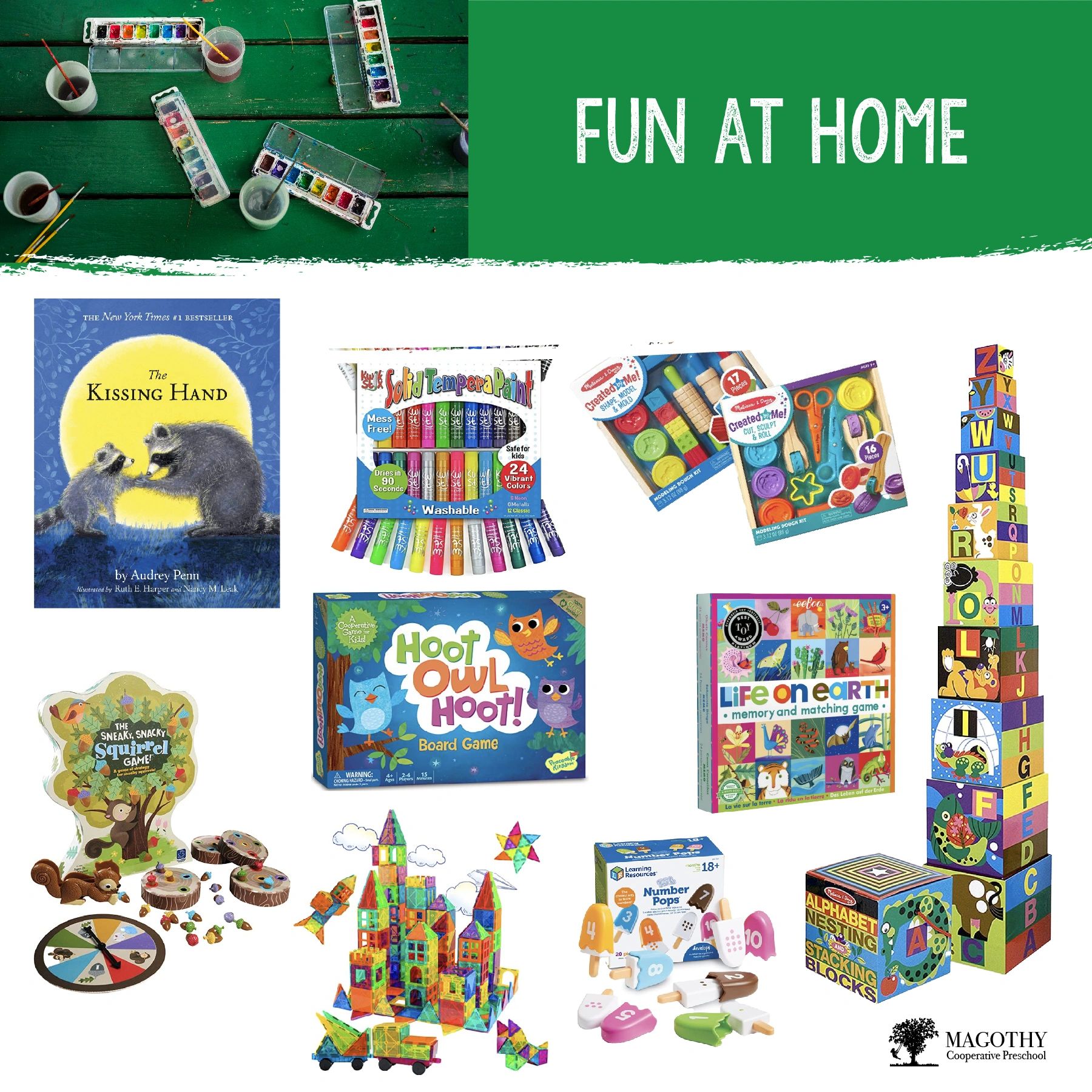 Bring a little bit of Magothy home with these teacher approved and recommended art supplies and games. Your kids will likely recognize them from our classrooms!